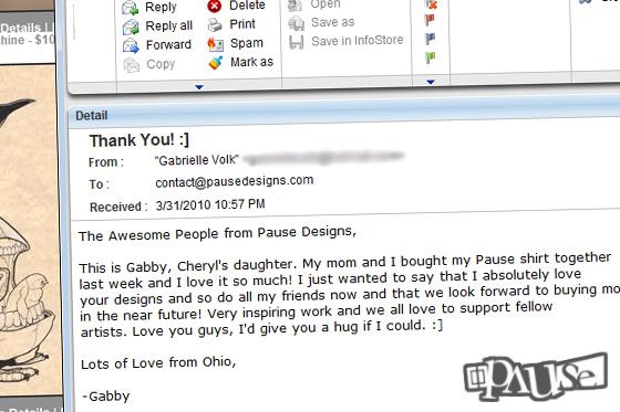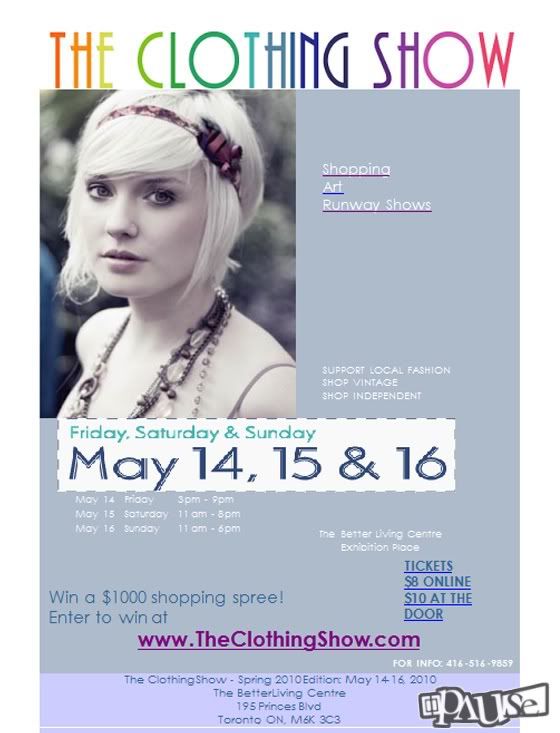 And get THIS, everyone who shows up gets a FREE Clothing Show tote bag, designed by us, Pause Designs. The bag also comes chock full of weird freebies like laundry detergent and... bug spray or something...I don't know, but what's important is you can take your free totebag and use it to carry all your new Pause loot, or fill it with stolen merchandise from other booths, or use it to build a fort for your hamster, or get us to sign it and sell it on ebay! Cool!