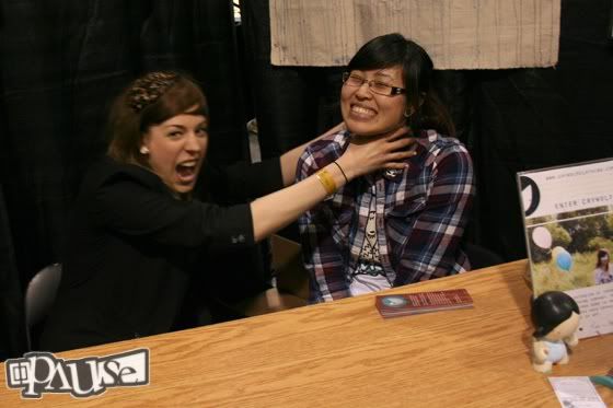 Crywolf's booth to snap a couple pictures of Rose and Steph for the blog, and Steph was just throttling Rose like that. She stopped when she saw me, but thank God I showed up when I did. Who knows what would've happened to Rose if I hadn't.