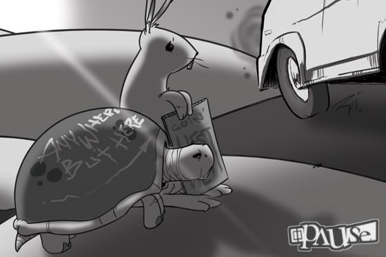 P.P.S. We actually did two different t-shirt designs for them, but I can't find the file for the other, so just imagine a side profile of a baby carriage with an old guy's tattooed arm hanging out the side. The colour scheme yellows and black, and it's on a purple shirt. Pretty cool, right?-Eric Pause