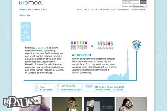 Just launded today, is a brand new online store called Ukamaku. Ukamaku is both a online fashion store and community based out of Toronto (Wherever THAT is...) The designers and brands on the site are chosen solely based on their awesomeness (So yes, you'll find Pause in there). So you know that everything you find on there is going to be great.