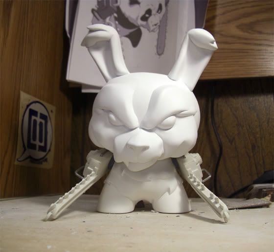 I just finished up a Chainsaw Panda custom using a 8" Dunny for a lovely collector in London, England. And I must say, it was a blast to make! I had been wanting to make our Chainsaw Panda character into a Dunny for years now, but had always been busy with other art projects. So I was pret-ty excited to finally be doing it. Here are the results: