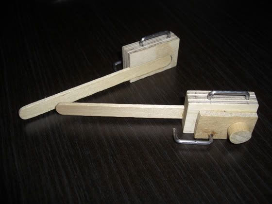 To make the chainsaws I started with a wood base (Which was easy because of my pal Aaron and his woodshop. Aww yeah!) so they wouldn't be so brittle, and to ensure that everything stayed straight:
