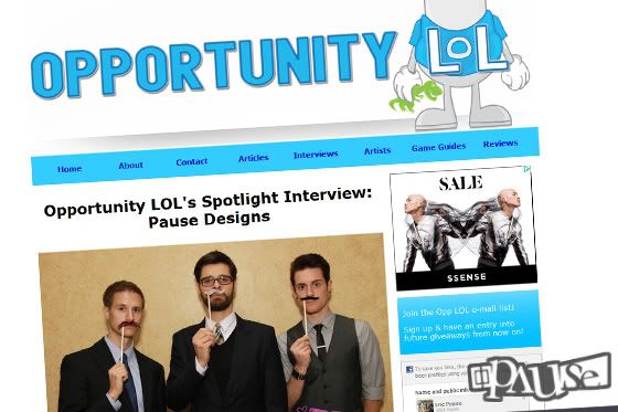 Opportunity LOL, and I can honestly say it's the best/funniest/most insightful/sexiest/most revealing interview we've ever done. Robert at Opportunity LOL took the time to ask us questions that were well researched, which resulted in answers we were excited to give. So if you're at work right now, start slackin' and go give it a read!