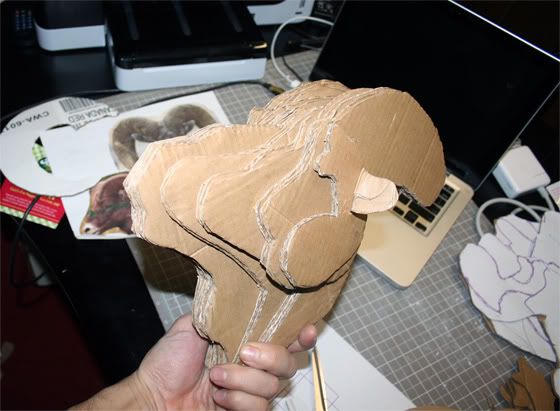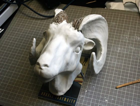 Step one: Cut out tons of shapes using cardboard and stack them together using glue. It doesn't matter what the shapes are, just keep stacking and it will eventually start to look like a Ram's head.